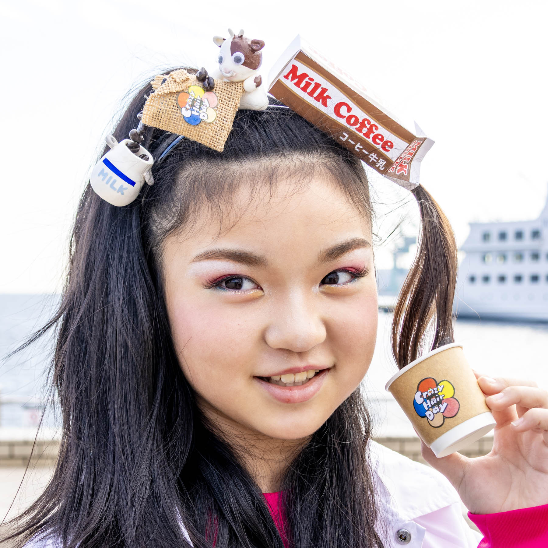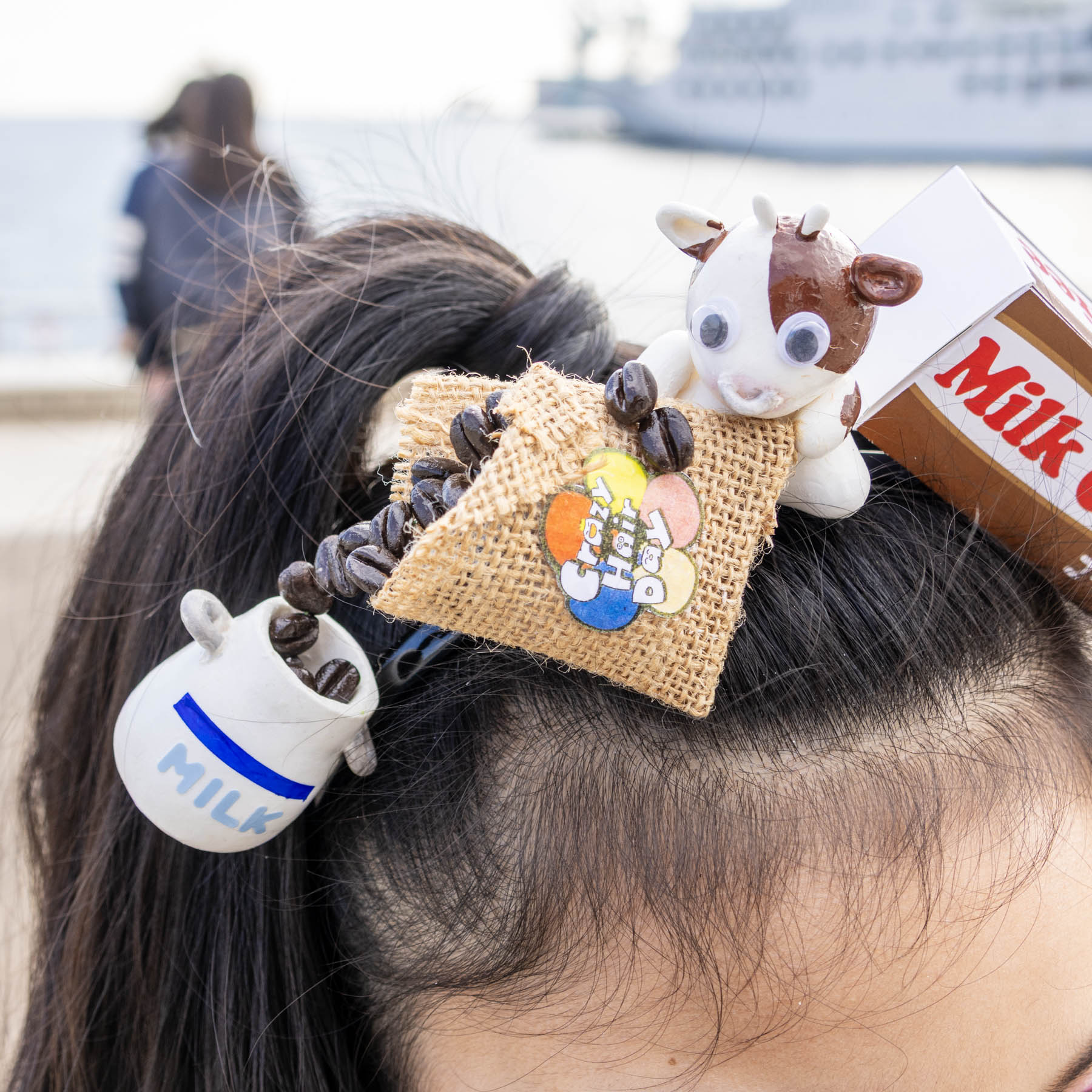 コーヒー牛乳を飲んだ時、ちょっと大人になったような気がしますよね。コーヒーは苦いけど、優しい味のコーヒー牛乳。パックは髪飾り用のミニ仕様です。