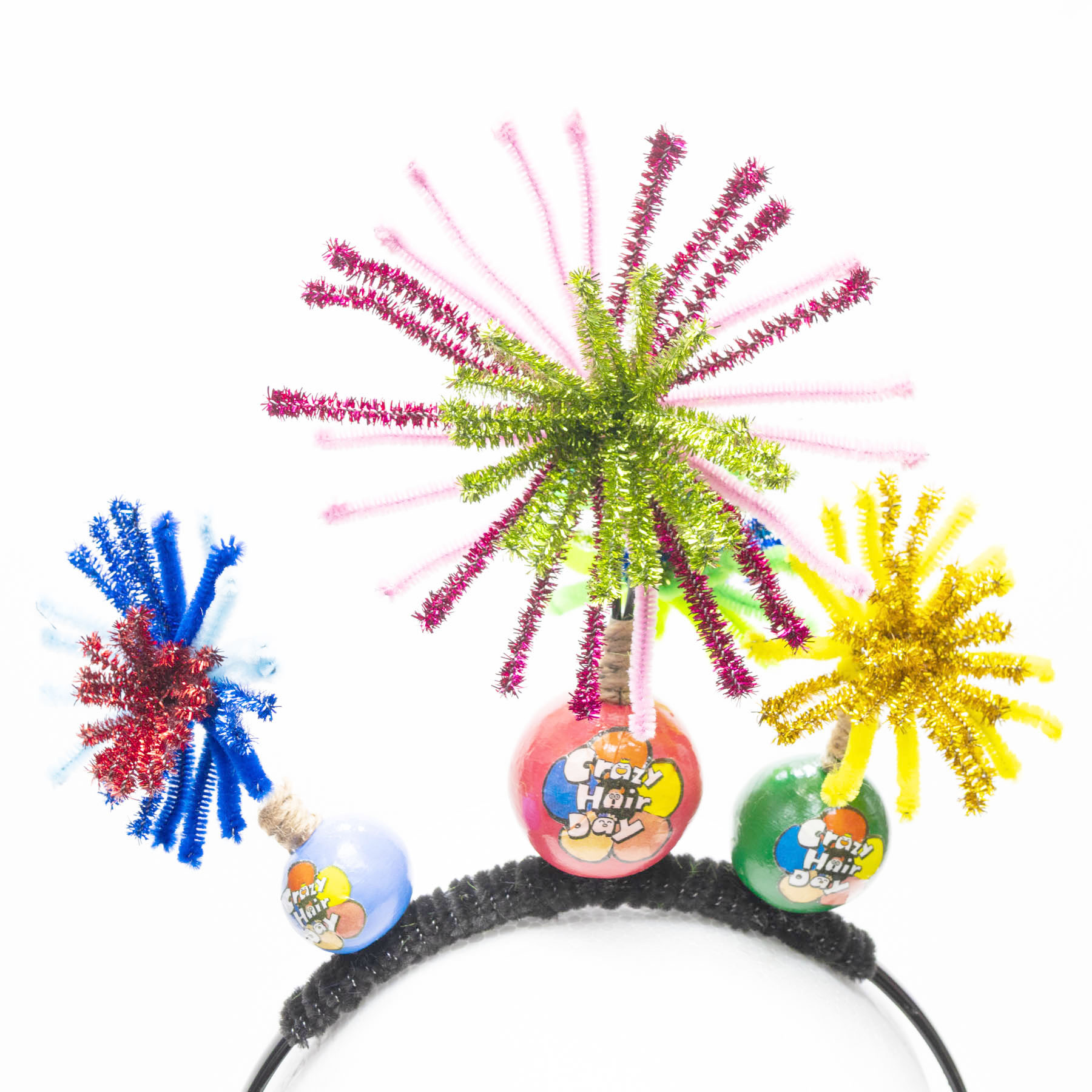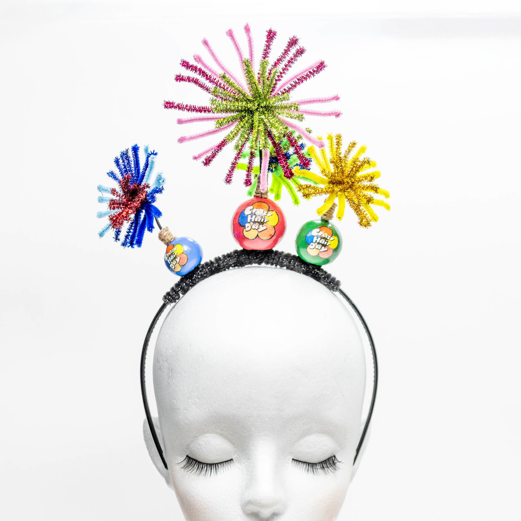 カチューシャの仕様になっていますので頭にかぶるだけでクレイジーヘアスタイルが出来上がります。